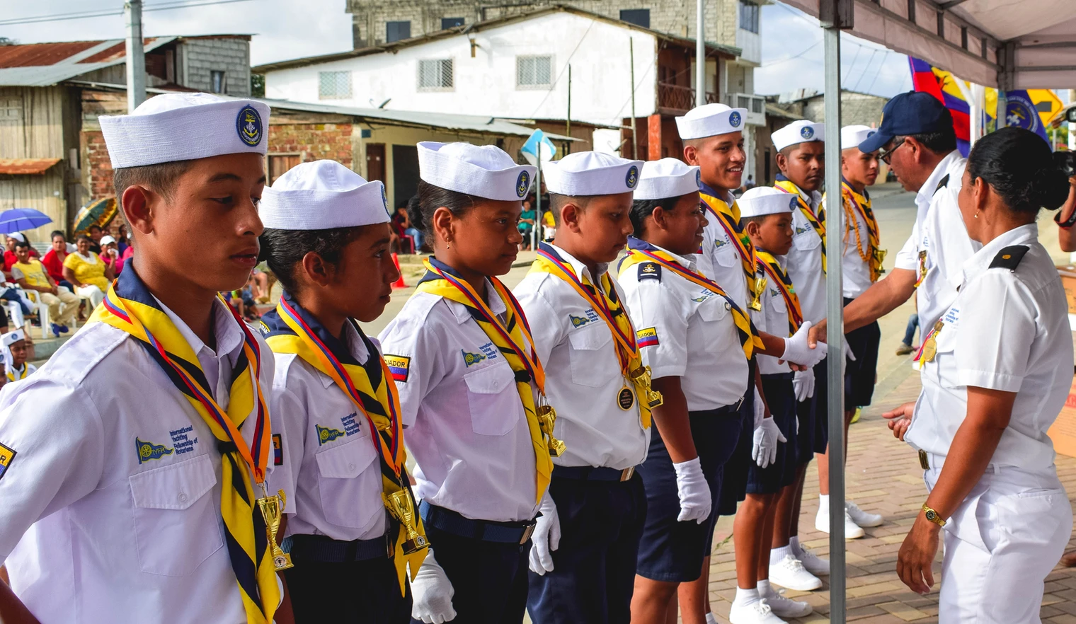 Somos un grupo de personas integrantes de la Flota Guayaquil Ecuador del Club Rotary International, nos hemos unido para la formación del Escuadrón Esmeraldas con 15 miembros y la Brigada de San Francisco del Cabo, con presencia de 25 niños. El fin de este proyecto es dar una oportunidad a los niños del pueblo de San Francisco Del Cabo para que puedan desarrollarse de manera integral, como personas de bien y como profesionales, contribuyendo de esta manera al avance y mejora del pueblo.